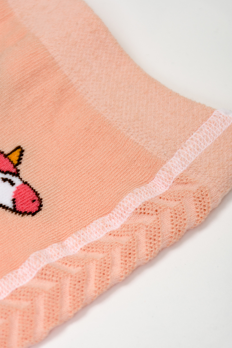 Очаровательные колготки в нежных оттенках. По всем поверхности вывязан узор, сзади - рисунок в виде единорога на радуге