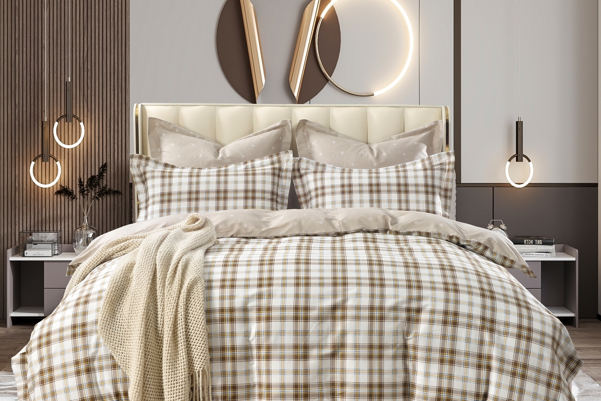 Кроме того, сатин – это излюбленный материал дизайнеров, он никогда не выходит из моды и способен преобразить любой интерьер. Сдержанная классическая клетка в бежевых тонах придаст статусный, изысканный вид Вашей спальне, добавит тепла и уюта утреннему пробуждению.