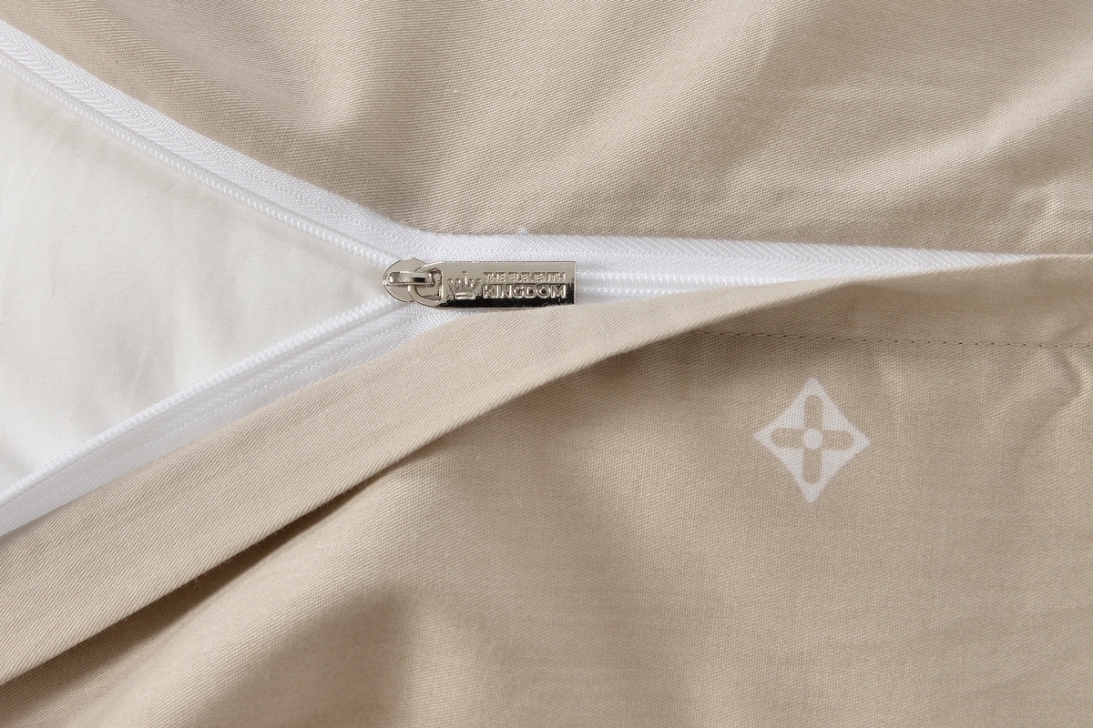 Брендированная молния на наволочках и пододеяльнике. Пододеяльник декорирован "ушками" 8см, наволочки декорированы "ушками" 5 см