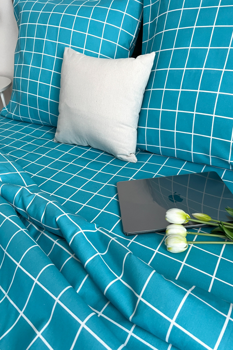 Комплект постельного белья изготавливается из бязи, ткани из качественного 100% хлопка. Бязь - ткань из натуральных волокон, обладающих замечательными свойствами - воздухопроницаемость, гигроскопичность. Плотность ткани 120 (+/- 5) гр/м2. Постельное белье из бязи легко стирать и быстро гладить. Легкий, мягкий и одновременно прочный материал великолепно подходит для постельного белья среднего ценового сегмента.